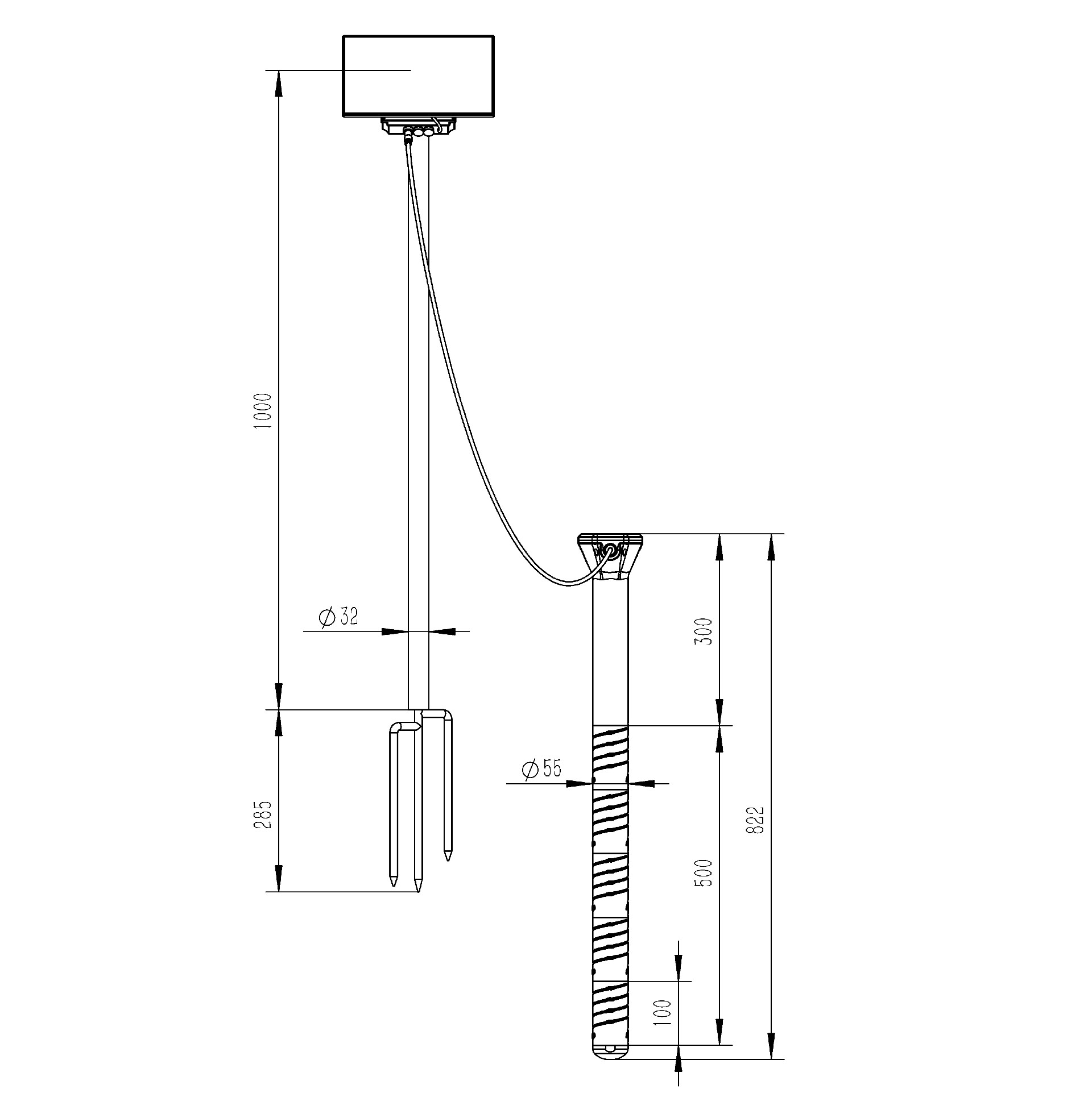 3. 反复持续上述打孔、取土,并在此过程中尝试性地将传感器轻放入孔洞中(请勿将设备用力触底),以测试孔洞的深度是否合适;若有卡顿,则使用取土钻修正,保证传感器放入、取出都比较顺畅;直到孔深与传感器所标识的安装位置齐平(零刻度线),打孔完成。